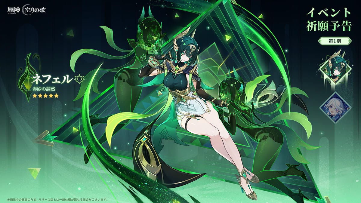 Luna Ⅱのイベント祈願前半では、新キャラクター「ネフェル」が登場し、「フリーナ」が復刻登場します。後半は、「アルレッキーノ」と「鍾離」が復刻登場します。