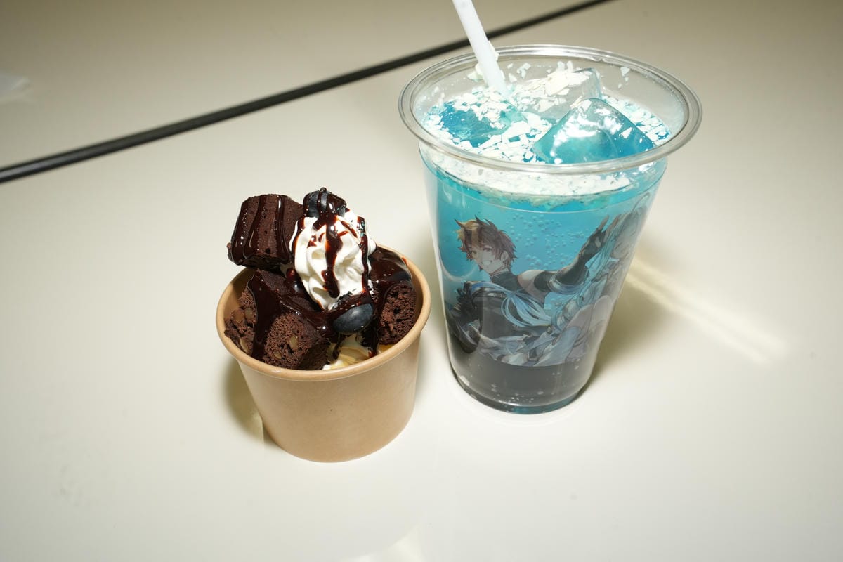 甘くて濃厚なブラウニーがとっても美味しく、リヴォルヴシーカー・ソーダはグラブルといえばのブルーのソーダに、ホワイトチョコレートがかかっており、ドリンクの底にはゼリーも入っています。