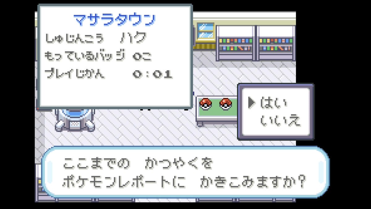 ①オーキドの研究所で、好きなポケモンを選ぶところまで進めて、レポート
