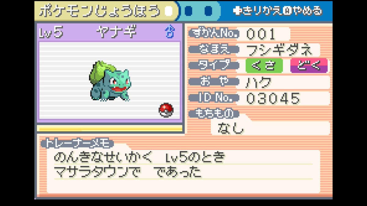 ※性格を変更するミントは当時はなかったアイテムのため、性格の変更はできない可能性が高い(※調査中)