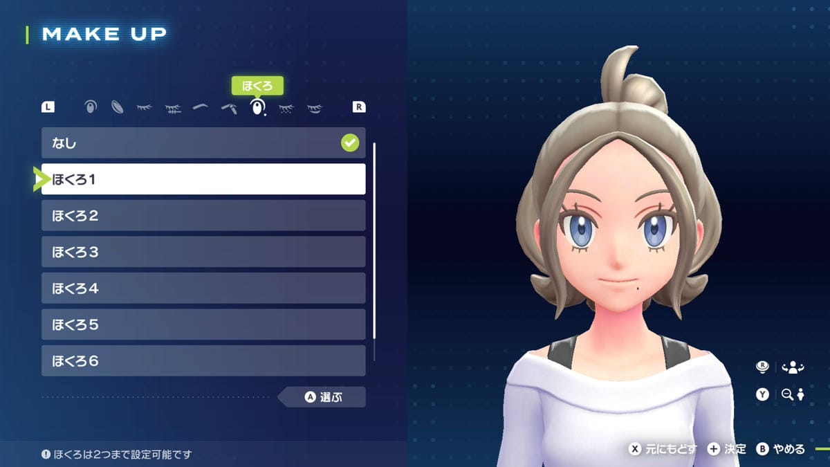 クマやほくろといった細かい要素まで選択可能なので、自分だけの主人公を作るのが楽しそうですね!