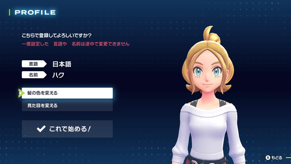 見た目はカスタムできるが、言語と名前は変更が出来なくなるので注意!