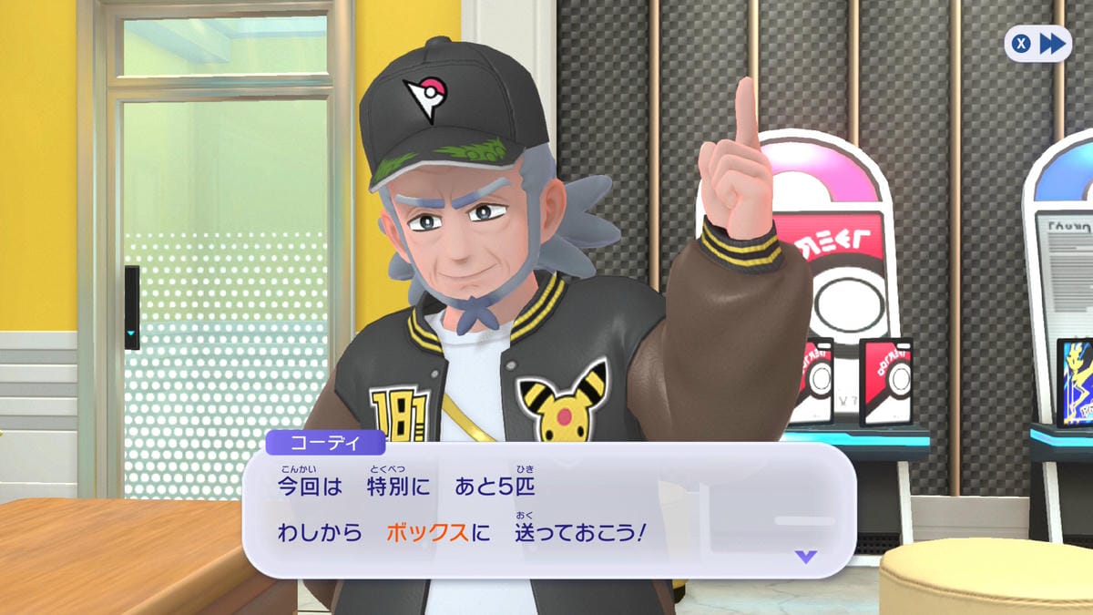 ルッコラのところでポケモンを選ぶと、あとの5匹はコーディが自分のボックスから送ってくれます。
