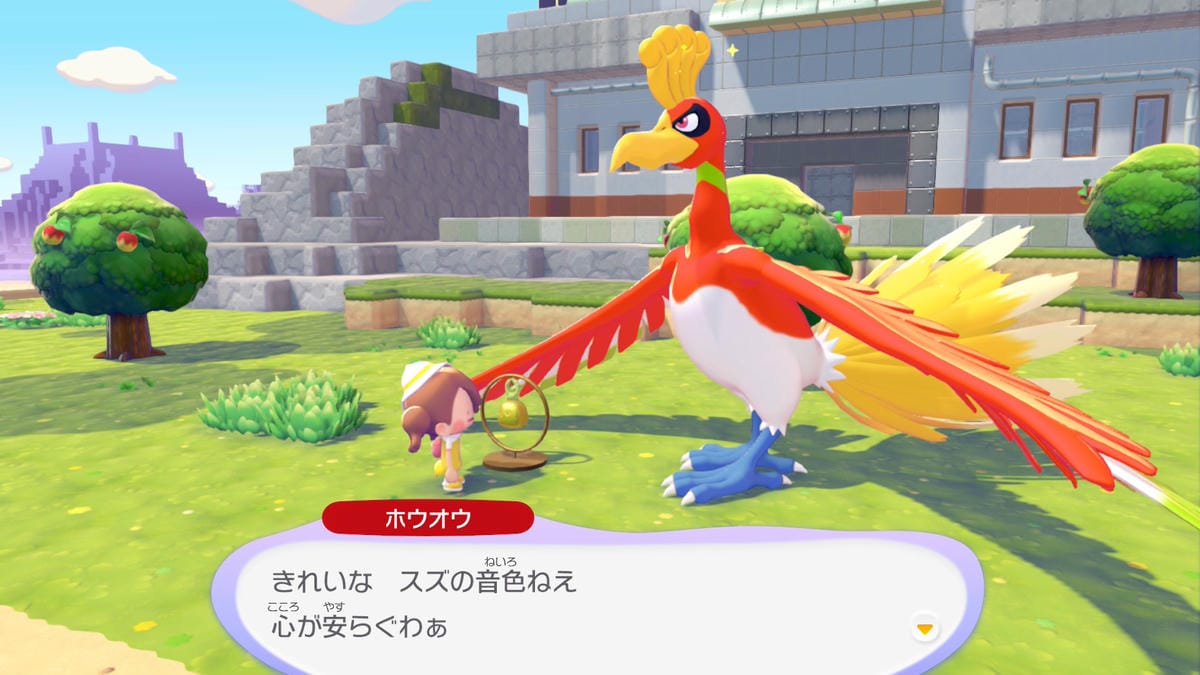 ホウオウが上空を飛んでいる時に開けた場所でとうめいなスズを鳴らすと、ホウオウが目の前に降りてきて、ともだちになることが出来ます。
