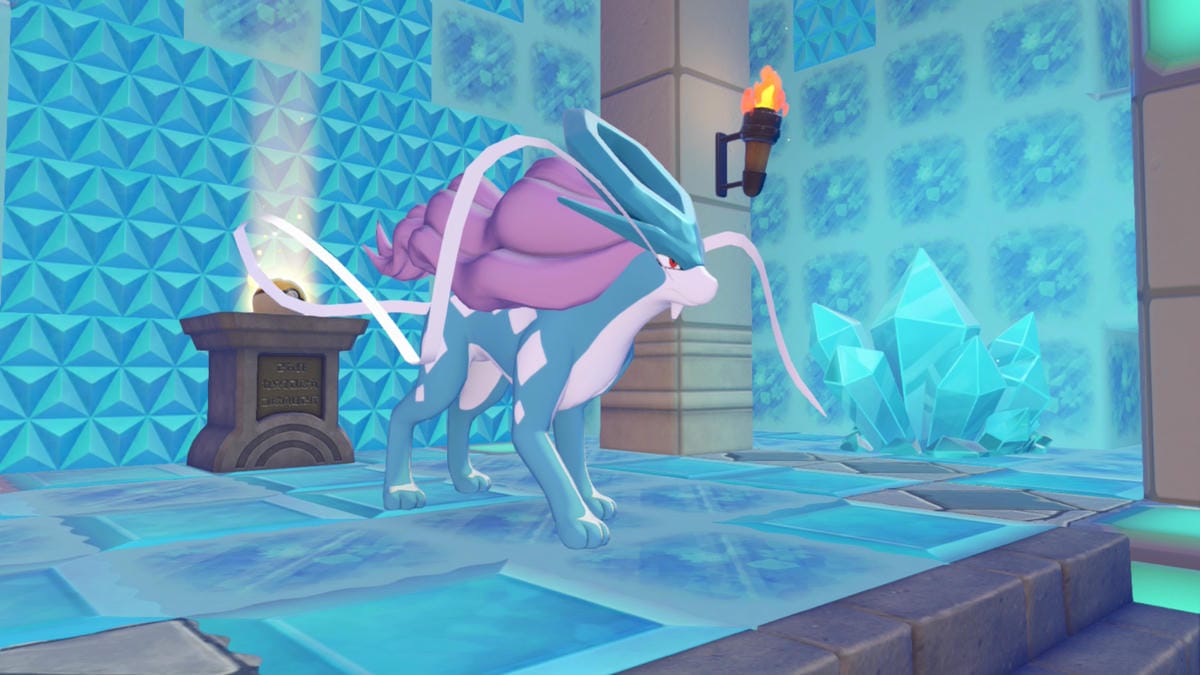 ゆめしまの地下にこおりとクリスタルのカベが見えたら、その先にスイクンがいます。
