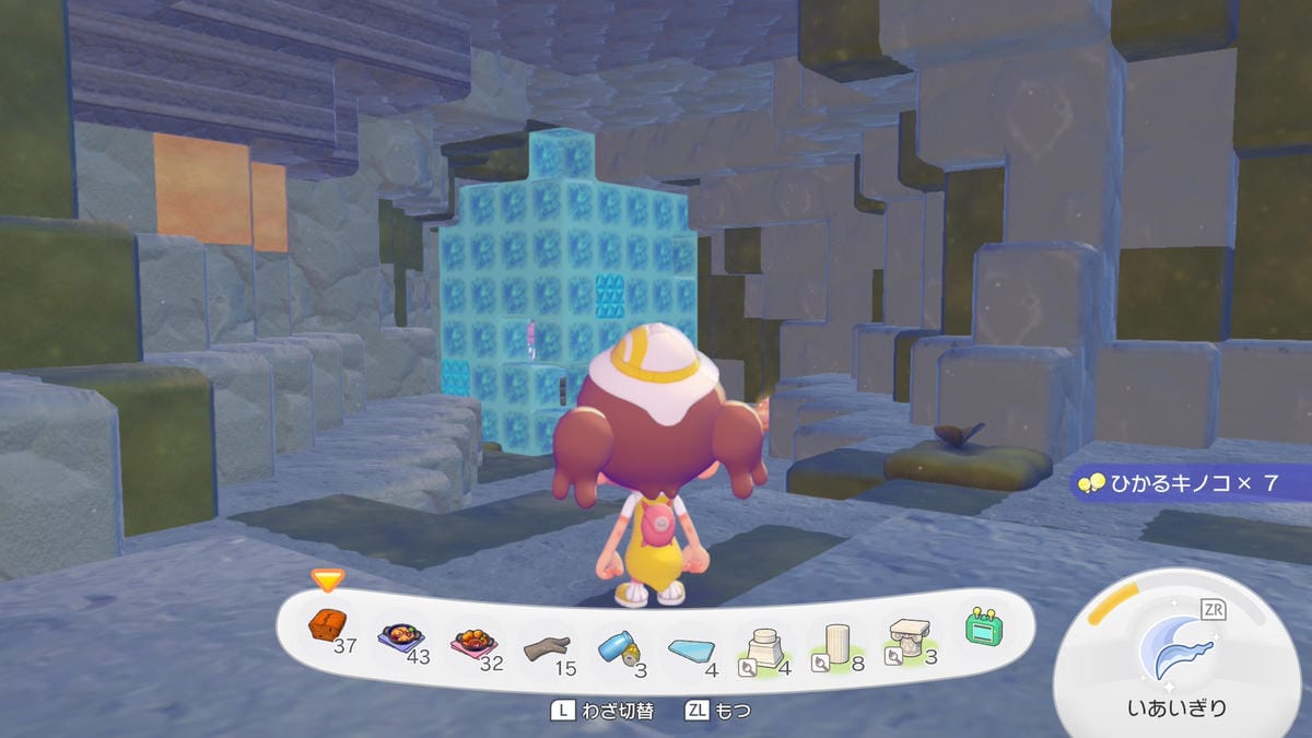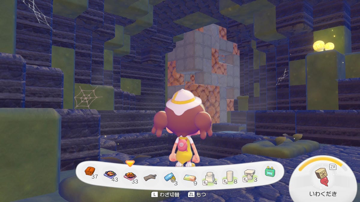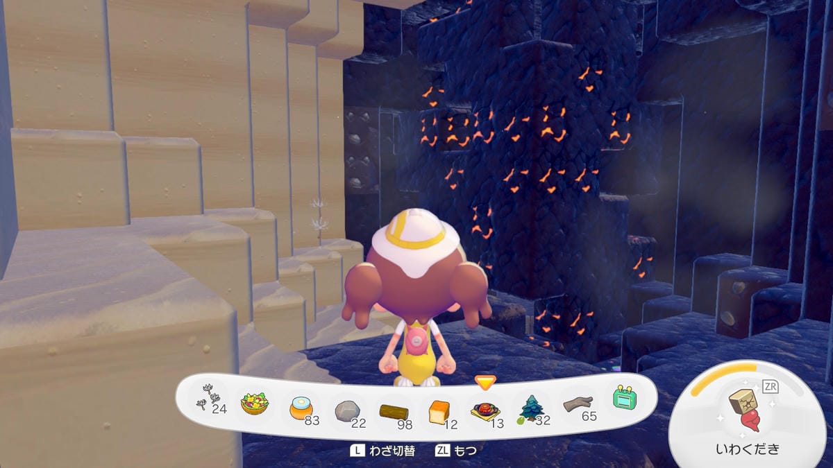 ④ブロックが確認できず、目当てのポケモンがいない場合は、欲しい素材を回収後にフワンテのところに行き街に戻る。