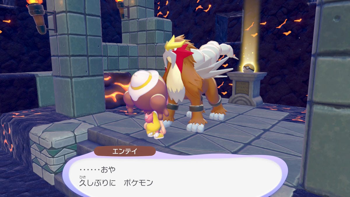 ゆめしまの地下にマグマいわのブロックが見えたら、その先にエンテイがいます。
