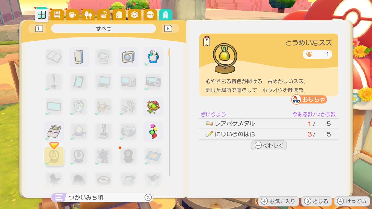 2回目以降は、とうめいなスズを鳴らすと、ホウオウが降りてきてにじいろのはねを渡してくれます。にじいろのはねが落ちるのを待つ必要が無くなるので時短になります。